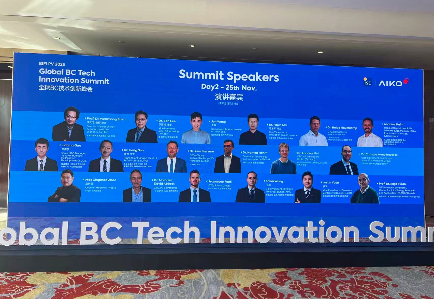 In questi giorni il nostro collega Francesco Fanti, Chief Technology Officer della divisione Fotovoltaico, è intervenuto come speaker in un importante summit internazionale in Cina dedicato alle nuove tecnologie back contact ad alta efficienza per i moduli fotovoltaici.